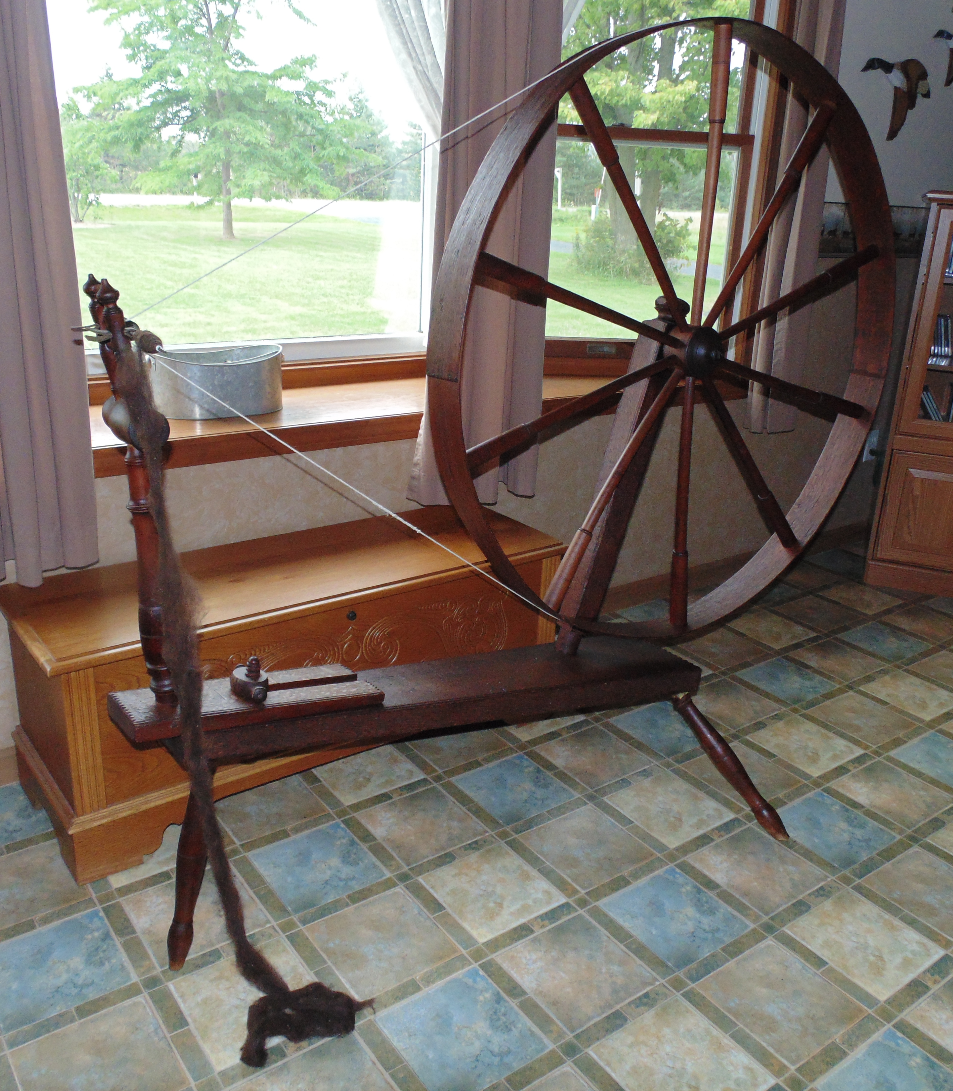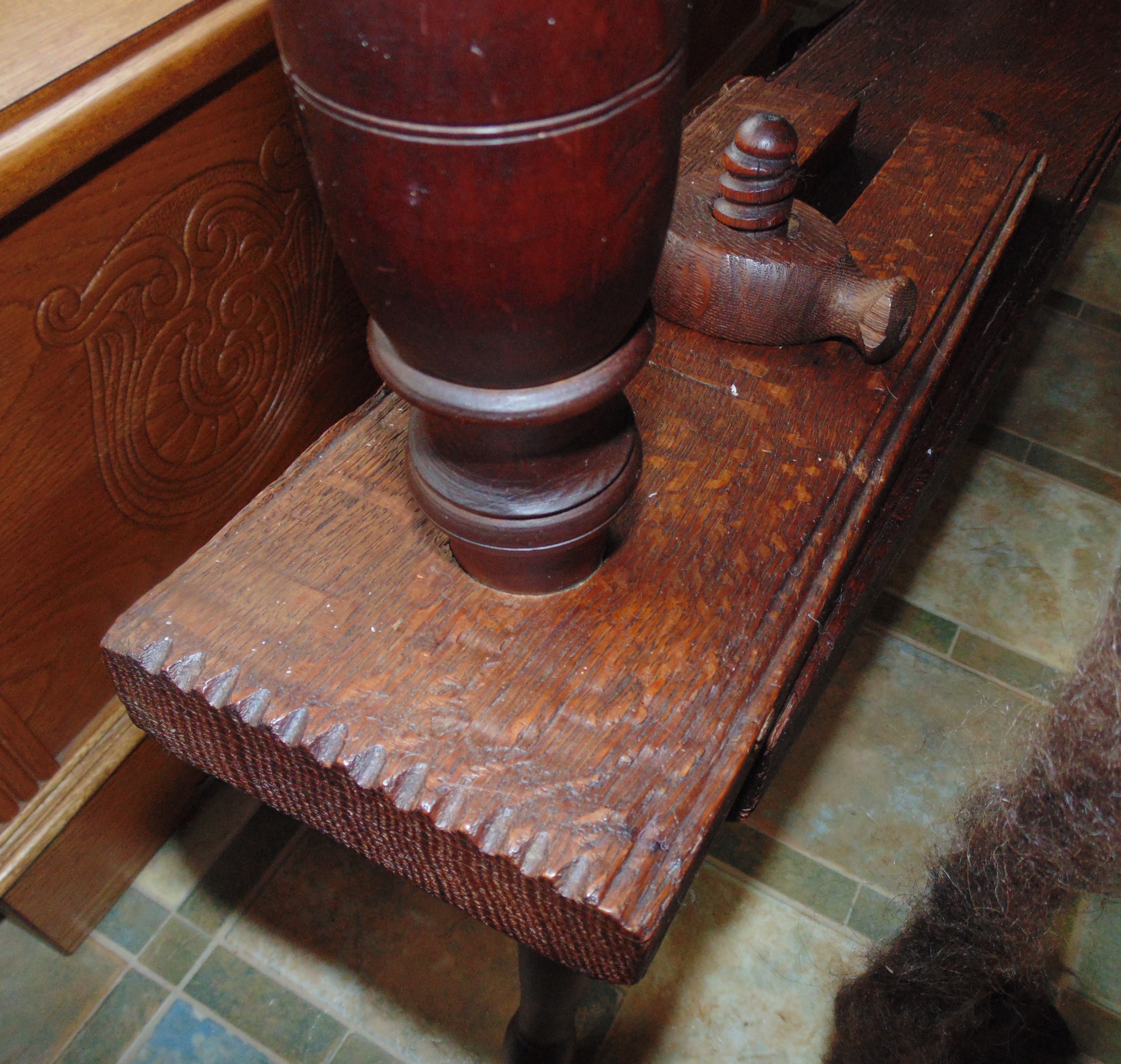 I found it on Craig’s List for $50. It was intact, but in poor condition. A bottle of Feed-N-Wax brought it back to life, and I had a new spindle made for it because the original was quite frail. I kept the original, but I don’t use it.