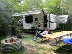 June brought several trips into Michigan’s beautiful upper peninsula … all of which involved a lot of rain. But hey, a rainy day in Da U.P. beats a sunny day anywhere else. We met up with Janet and Marsha on a day trip, camped at the Straits State Park, a first for us, and spent Engineer’s Weekend along the soggy banks of the St. Mary’s River watching the freighters.