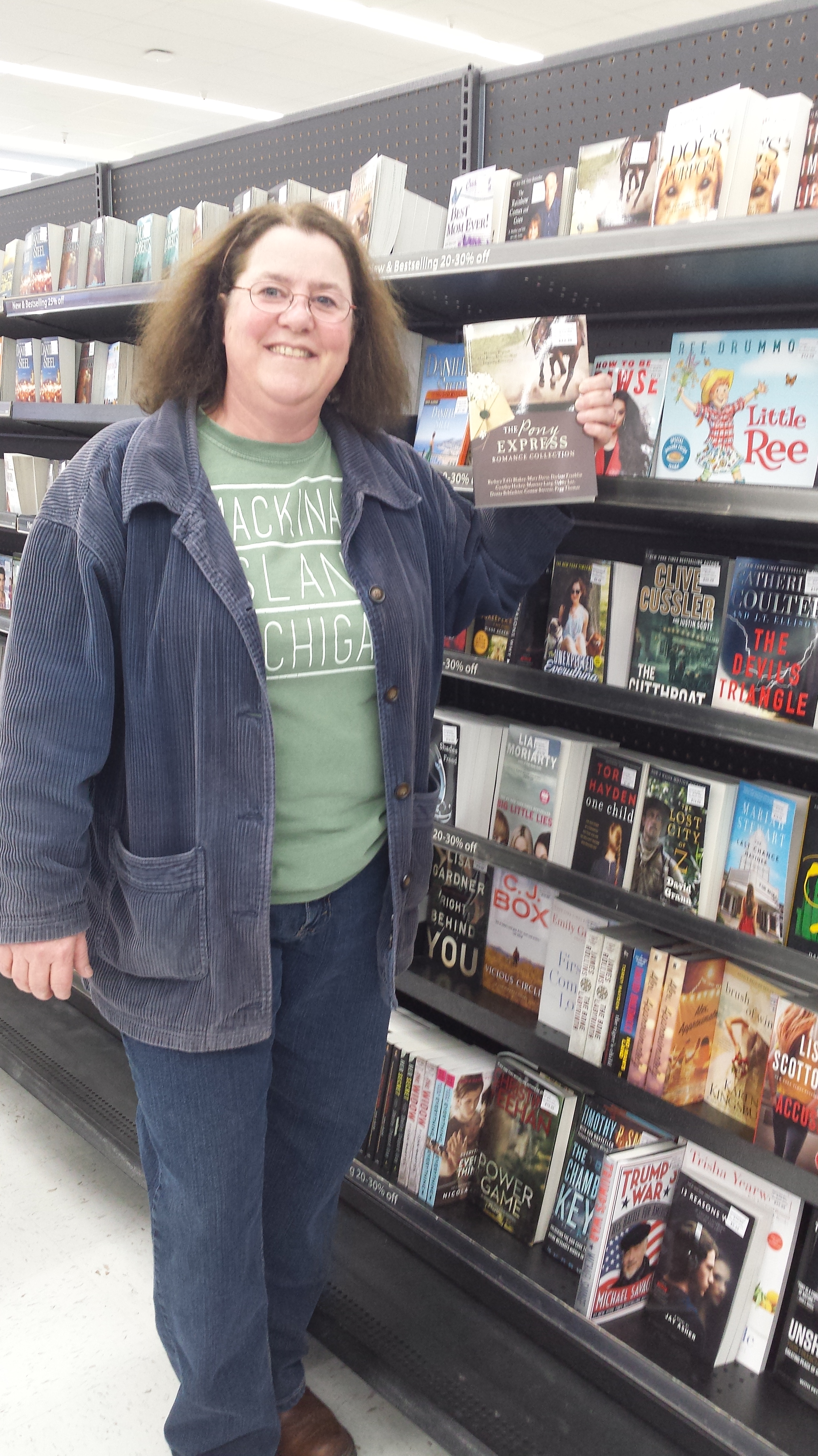 Then later that month, I drove up to Mackinaw City to visit with fellow Colonial Quill author Carrie Fancett Pagels. We had a great time walking around the city, eating lunch at Scalawags, and talking books. And we visited … what else? … the local bookstore.